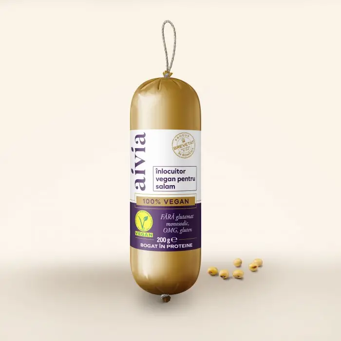 Ingrediente: apă, izolat proteic de SOIA (țara de proveniență U.E.), ulei vegetal de floarea-soarelui, amidon din cartofi, sare, arome, oțet tamponat, extracte vegetale, colorant sfeclă roșie și extract de paprika, condimente (ceapă, paprika, usturoi, ghimbir, curcuma, piper, coriandru), boia iute, hrean, busuioc.