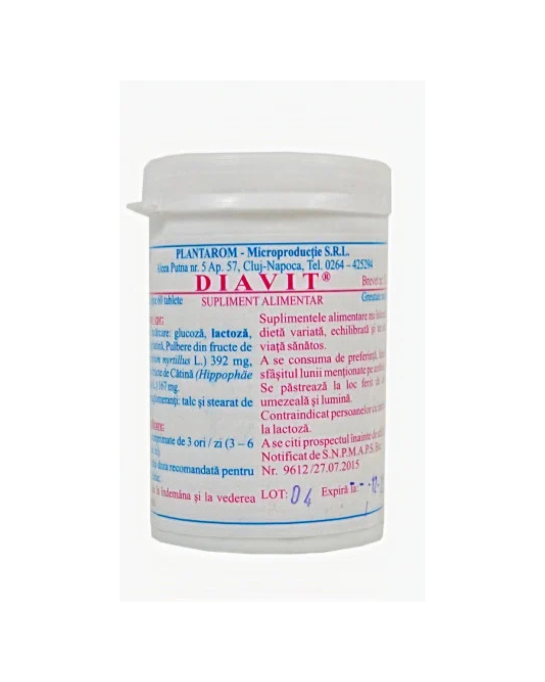 Diavit este un remediu natural, unic și original românesc pentru diabet și hiperglicemie. Diavit este un produs bogat în vitamine (C, provitamina A, PP, B1, B2, E), săruri minerale (K, Ca, P, S, Mg, Mn, Fe), principii naturale: antocianozide, fitoncide, tanini, acizi vegetali (miristic, palmitic), pectine, polifenoli.