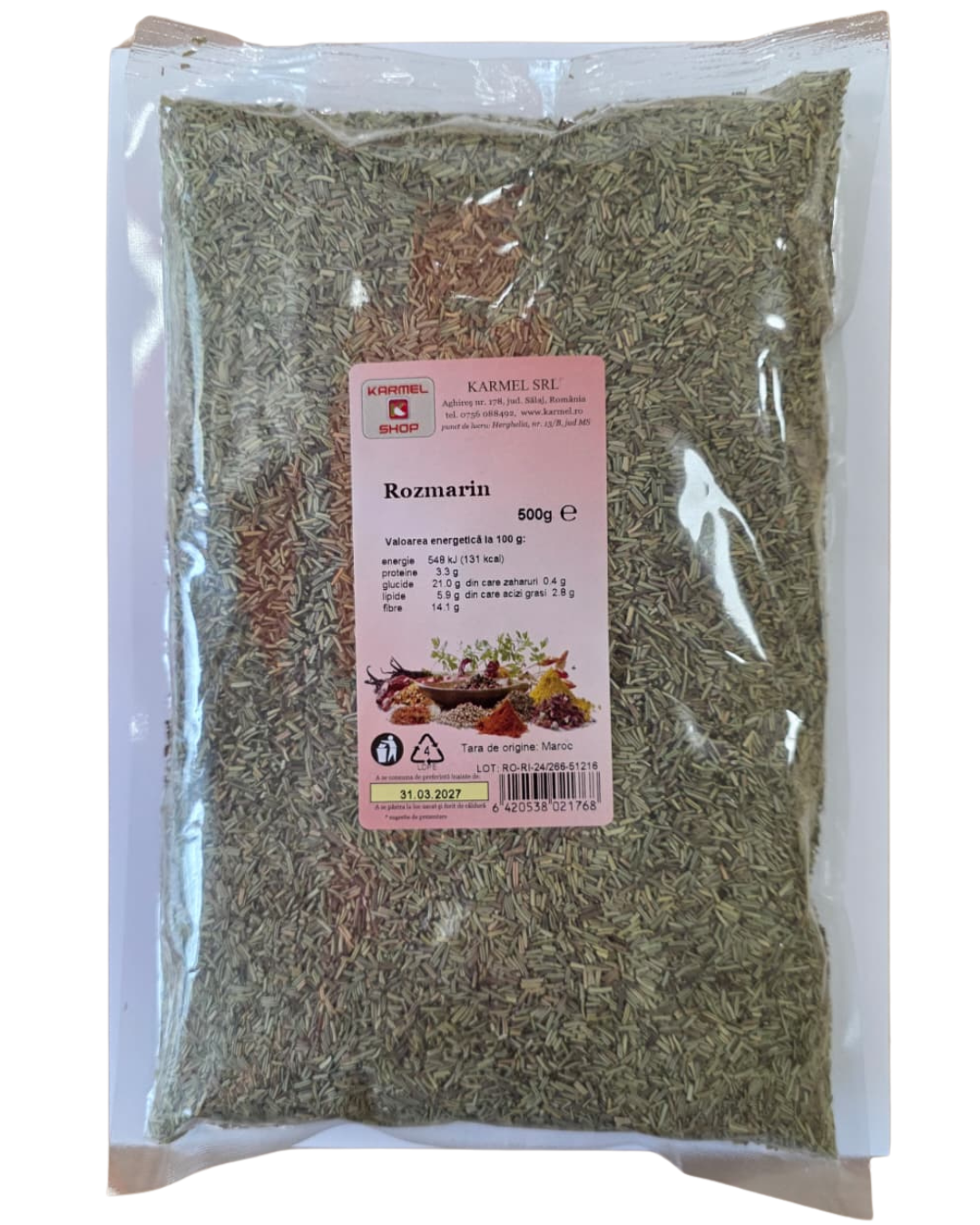 Rozmarinul uscat este un condiment aromat, lemnos, cu note de pin și lămâie, ideal pentru fripturi, cartofi la cuptor, sosuri și pâine. Bogat în antioxidanți, susține digestia, sănătatea creierului și circulația.