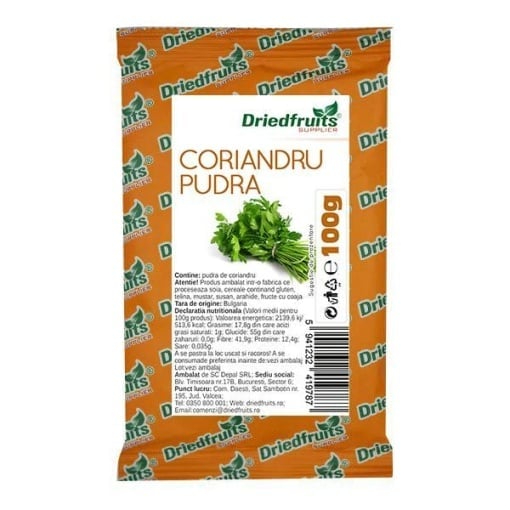 Mod de utilizare: Coriandru pudră poate fi utilizat într-o multitudine de preparate culinare, de la supe, sosuri și marinări, până la preparate din carne și legume. Se recomandă adăugarea acestuia spre finalul procesului de gătit pentru a păstra intactă aroma. Poate fi folosit și în rețete de patiserie pentru a adăuga un gust unic și exotic. Ideal pentru cei care doresc să experimenteze și să îmbogățească profilul aromatic al preparatelor lor.