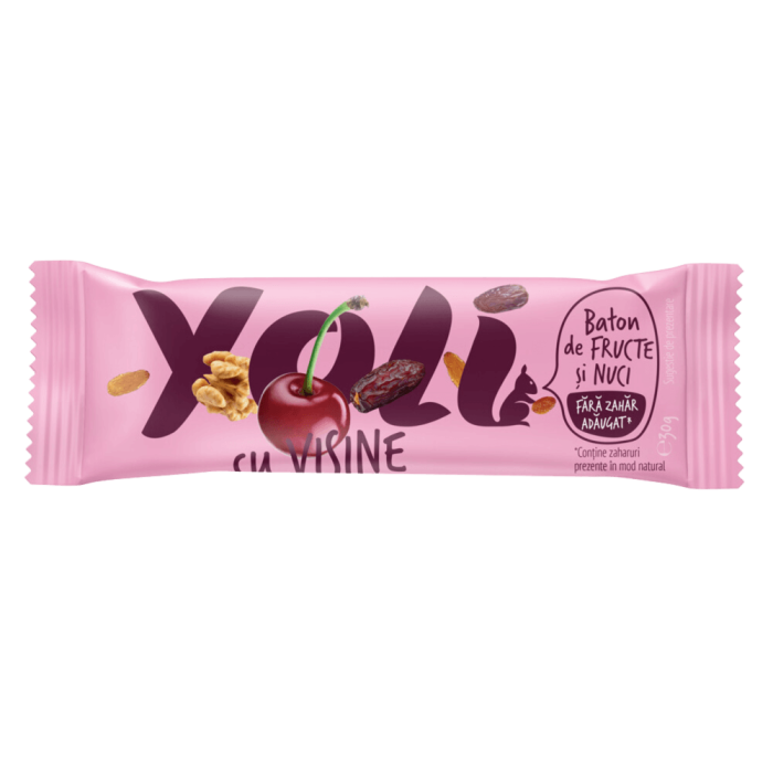 Batonul de fructe și nuci cu vișine este o gustare vegană și fără gluten. Acesta se remarcă prin simplitatea ingredientelor și absența zahărului adăugat, fiind o sursă naturală de energie și fibre.
