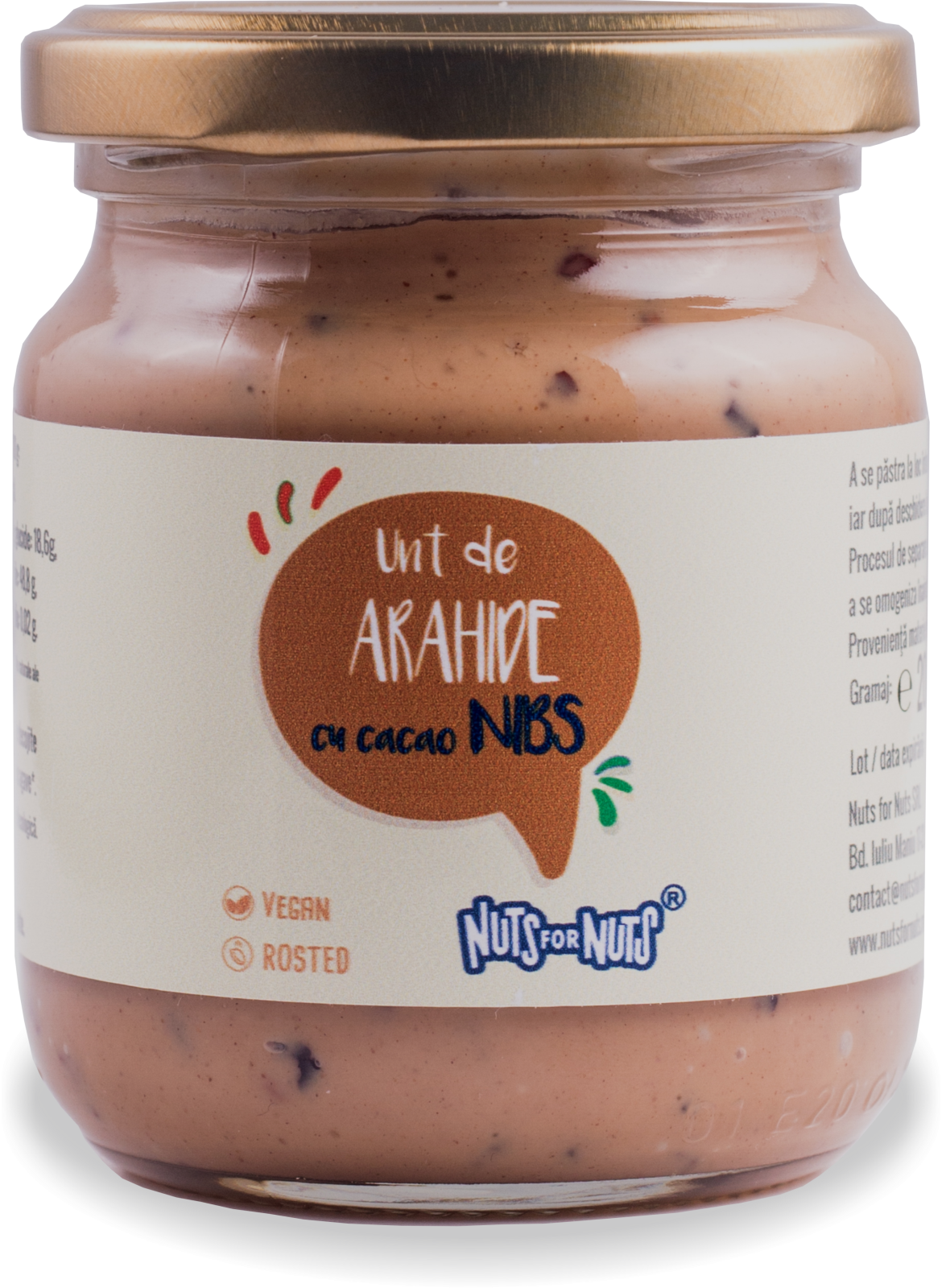 Ingrediente: arahide coapte, decojite, nibs de cacao (provenit din agricultură ecologică), sirop de agave (provenit din agricultură ecologică).