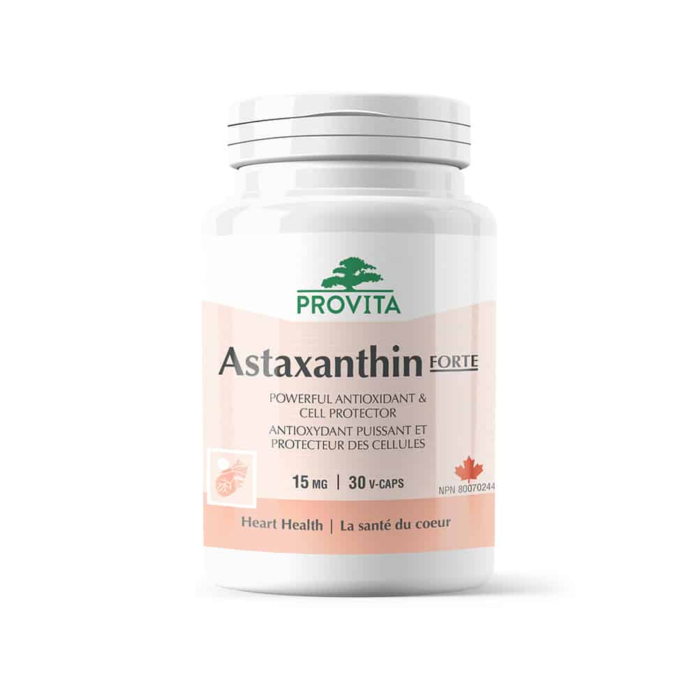 Astaxanthin (Astaxantina) este un antioxidant din familia carotenoizilor. Cea mai bogata in axtaxantina este alga de culoare rosie Haematococcus pluvialis. Este hrana preferata de catre Krill conducand la culoarea rosie, specifica. Fiecare tip de antioxidant actioneaza cu preponderenta in anumite organe avand diferite functii de anihilare a speciilor oxidante specifice acelui organ. Astaxantina actioneaza cu preponderenta la nivelul vaselor sanguine mici cu efecte pozitive pentru inima, creier, sistem nervos si ochi. Dar poate cea mai importanta actiune antioxidanta a Astaxantinei este la nivelul mitocondriei care este motorul celulei, cel care produce energia necesara functionarii acesteia. Fata de alti antioxidanti, Astaxantina are cea mai mare capacitate de a anihila acei radicali liberi cu “oxigen singular”.Dat fiind ca Astaxantina poate traversa bariera dintre sange si creier, joaca un rol foarte important pentru tot ceea ce este legat de activitatea cerebrala protejand sistemul nervos cerebral de efectele nocive ale stresului oxidativ. De aceea, Astaxantina este folositoare in tratarea bolilor Alzheimer, Parkinson sau pentru reducerea sechelelor cauzate de un accident vascular. Dat fiind ca Astaxantina ajunge cu usurinta pana in vasele mici capilare care alimenteaza ochiul, poate complementa si deci se poate asocia sinergic cu Luteina si Zeaxantina. Astaxantina de la Provita Nutrition ofera un dozaj terapeutic maximal de 15 mg per capsula, fiind astfel unul dintre cele mai potente de pe piata. Unele studii clinice recente indica un efect pozitiv al Astaxantinei asupra sistemului imunitar cu aplicatie in unele tipuri de cancer.