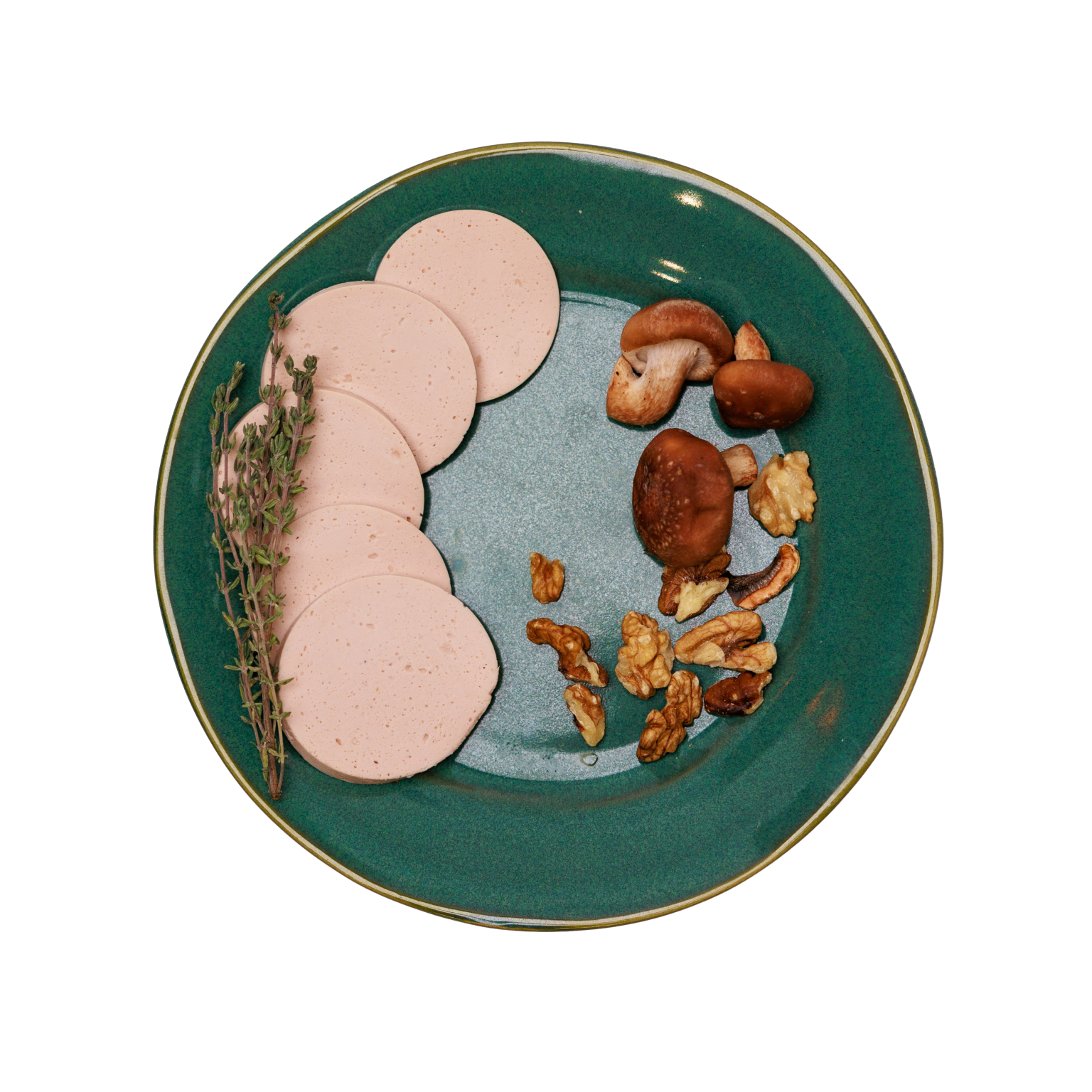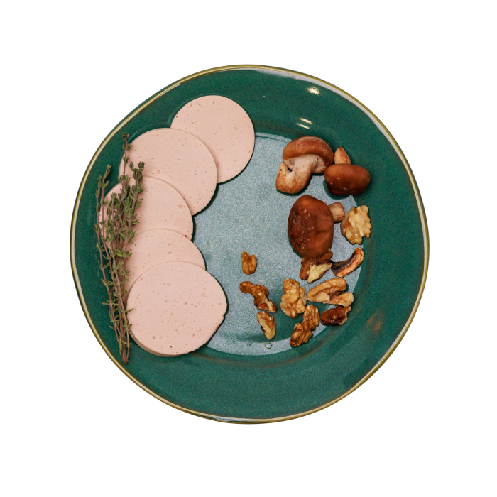 Alternativă vegană la mezeluri (parizer vegetal), concepută ca o opțiune sănătoasă și echilibrată pentru alimentația de zi cu zi sau în perioadele de post.